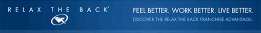 Please Note: This Relax The Back advertisement, and all other franchise opportunities, franchises for sale, business opportunities, businesses for sale, franchise financing providers, and other advertisements on this website should not be considered an offering or solicitation, and they are not recommended, endorsed, or approved in any way by TopInternationalFranchises.com. All listings and advertisements on this website are submitted to TopInternationalFranchises.com by the franchise, business opportunity, business for sale or other advertiser, and that information is relied entirely on for the truthfulness and accuracy of the information provided. TopInternationalFranchises.com has no stake in these companies, and have not independently verified any of the information submitted, no responsibility for its accuracy or completeness is assumed by TopInternationalFranchises.com. Persons submitting the inquiry form are under no obligation to purchase or otherwise utilize any services offered, they are simply requesting more information on the franchises or business opportunities listed. Please review the full advertisement before responding. -